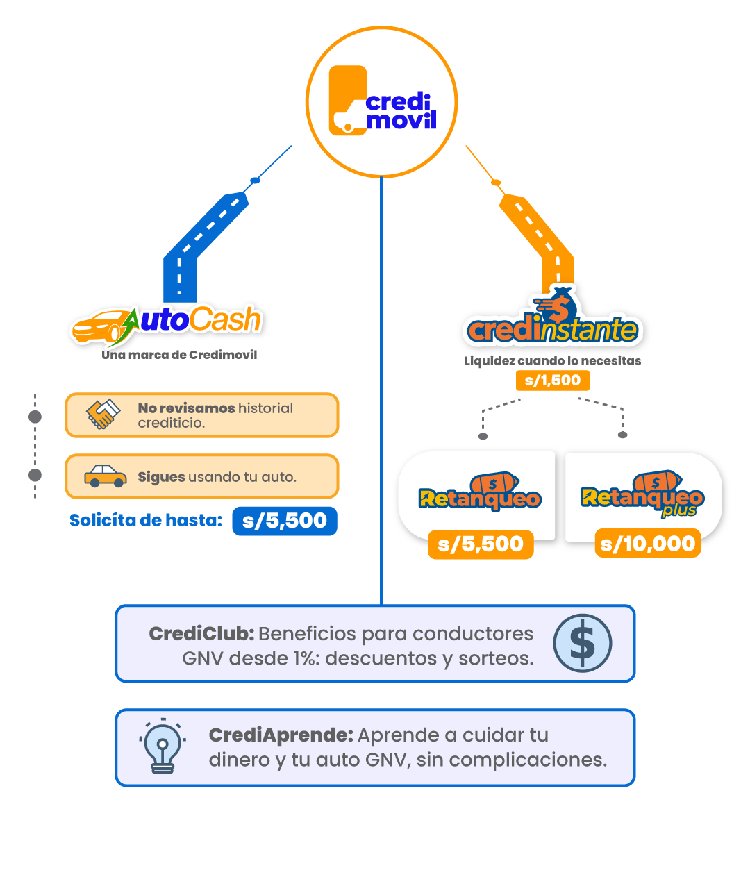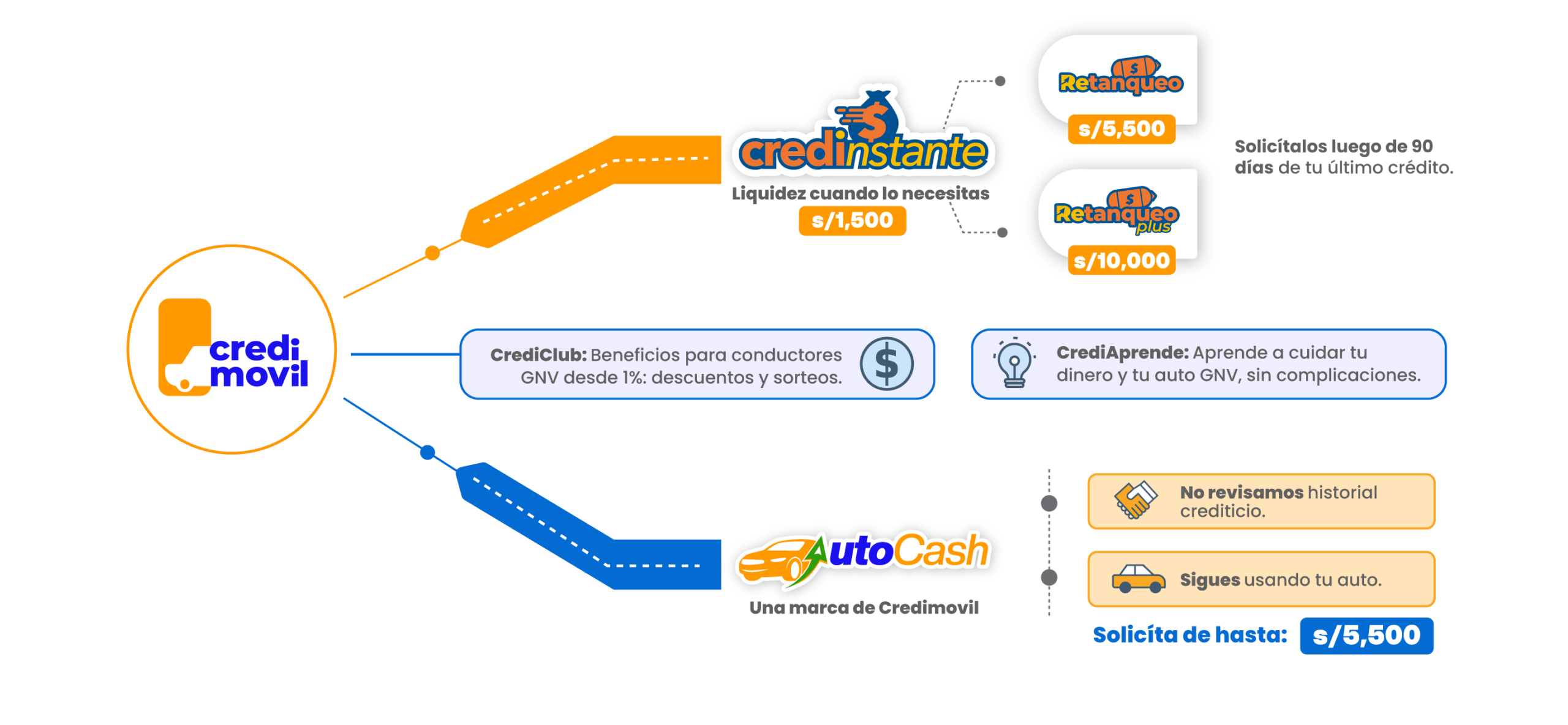 En Credimovil encuentras opciones de financiamiento para propietarios de vehículos en Perú. Si tienes un vehículo a GNV, puedes acceder a Credinstante. Si buscas un préstamo con garantía vehicular, puedes evaluar Autocash.